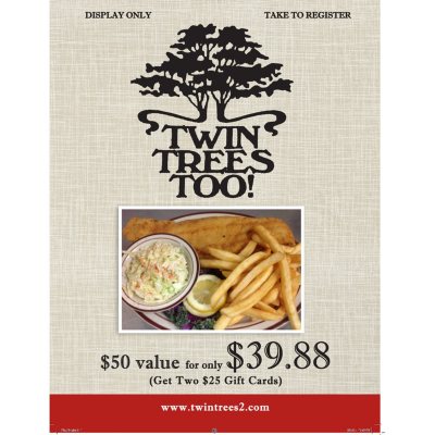 Twin Trees Too 2 X 25 Giftcards Sam S Club